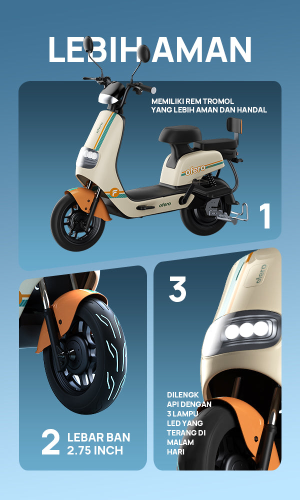 Desain cocok di segala kondisi, tarikan awal enak, spedometer jelas, sangat ringan dan enak sekali, baterai bisa dicabut dan dicharge di mana aja. dan Harga sangat terjangkau untuk baterai yang udah lithium. terima kasih ofero, saya bisa hemat waktu untuk dari antri di spbu, service2, ganti oli dan segala macem kerepotan itu. over all best.